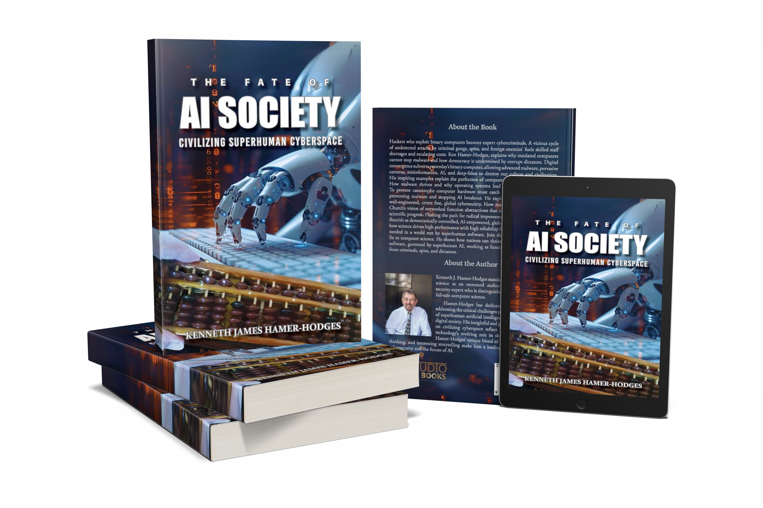 Book two, ‘The Fate of AI Society, Civilizing Superhuman Cyberspace,’ explains the unpleasant destiny of binary cyberspace as an unavoidable Orwellian Dictatorship fun by authoritarian surveillance. and government dictatorship in collusion with the industrial dictators of centralized computer science. It explains how unrestricted superhuman software will take control run by dictators to suppress individuality and democracy and run the world through inherited privileges, crushing the very spirit of the American Dream and democracy worldwide.