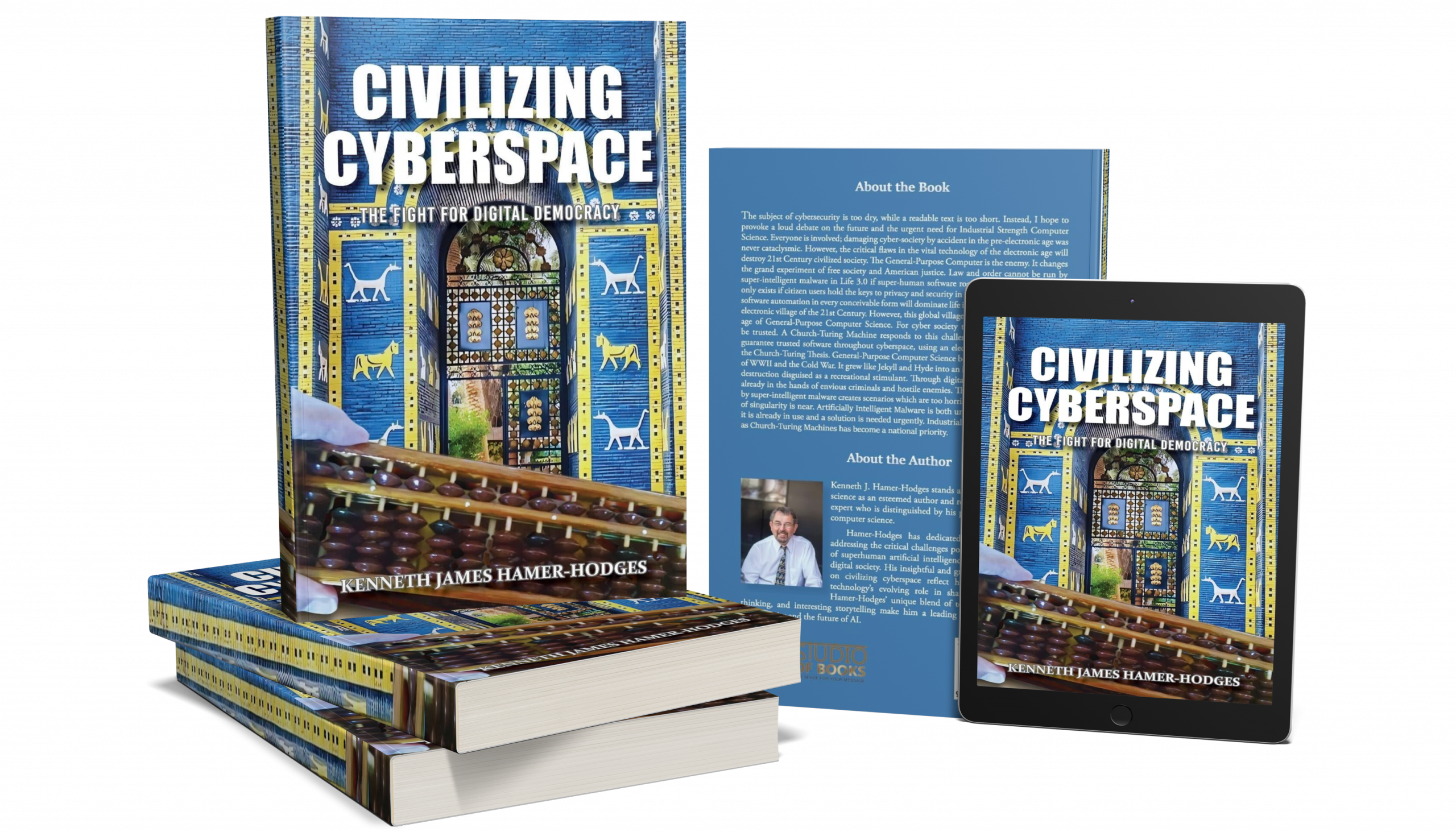 The first book called ‘Civilizing Cyberspace, The Fight of Digital Democracy,’ explores the computer science through the details of its origin as an abacus and the slide rule, the first programmable computer, Charles Babbage’s Analytical Engine and the first program designed and documented by Ada Lovelace, onto the tragic distortions of von Neumann’s binary computer that leave binary computers centralized and vulnerable and how Alonzo Church and Alan Turing envisioned flawless, endless computer science as a Church-Turing machine first implemented as the PP250. They democratized cyberspace as a level scientific playing field for global communications by using symbolic addressing and the universal science of nature as the Lambda Calculus, defining the fabric of the Information Age.